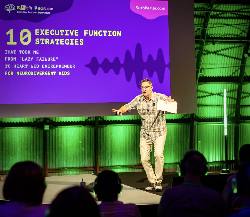 “Seth is a fantastic and wildly ENGAGING on stage, and his passion for educating parents, teachers, and children about Executive Function is inspiring. He’s able to take what seems like an impossible and frustrating “disability,” and show what a true gift it can be when children and their parents are properly informed and supported. Most importantly, he gives incredibly powerful tips, tricks, processes, and systems for success, no matter where you or your child are getting hung up. Seth is real and authentic, sharing his own experience transparently as a foundation for others to succeed.” – Stephanie Z. Grand Junction, CO
